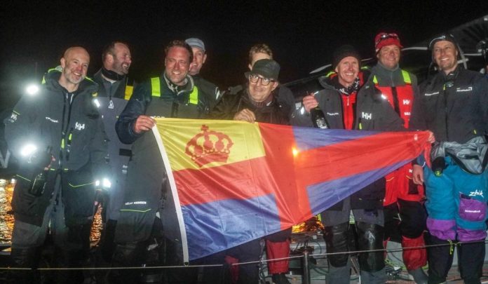 Numerosos socios del Real Club Náutico de Palma y aficionados a la vela se congregaron en el puerto para recibir a la tripulación del Trifork. Emerico Fuster, presidente de la entidad organizadora, ha hecho entrega al armador Joern Larsen de un gallardete del club. El nuevo registro del Trifork se grabará en una placa que, desde este martes, se exhibirá en el marco del cuadro del artista Luca Monzani que preside la entrada principal del edificio social del RCNP.