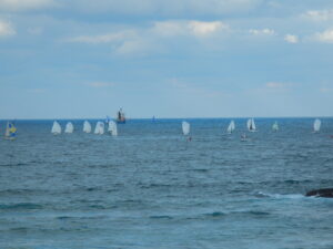 Ayer domingo la clase J80 repitió en el Sardinero, pero con viento del cuarto cuadrante de una media de diez nudos.