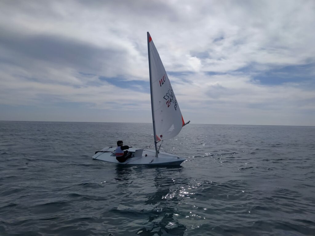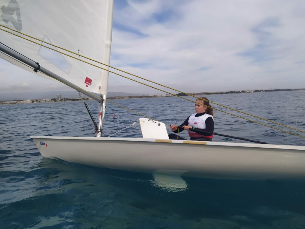 Ainhoa Bejer, Jorge Campos y Carlos Casanueva han viajado hasta Cambrils para participar en la Copa de España ILCA 4 que comienza en el día de hoy en aguas de Cambrils.