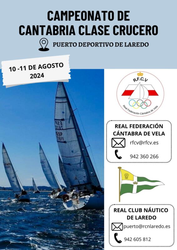 Del 9 al 11 de agosto de 2024 tendrá lugar en aguas de Laredo el Campeonato de Cantabria de la clase Crucero, organizado por el Real Club Náutico de Laredo junto con la Real Federación Cántabra de Vela.
