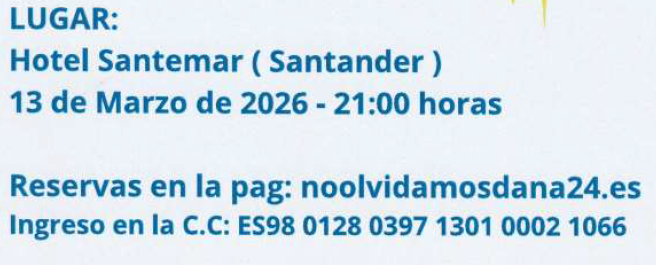 La Asociación Cultural Santiago organizará el próximo 13 de marzo de 2026 una cena benéfica en el Hotel Santemar de Santander, con el objetivo de recordar y apoyar a los afectados por la DANA de 2024. Cuaderno-Dana-26.