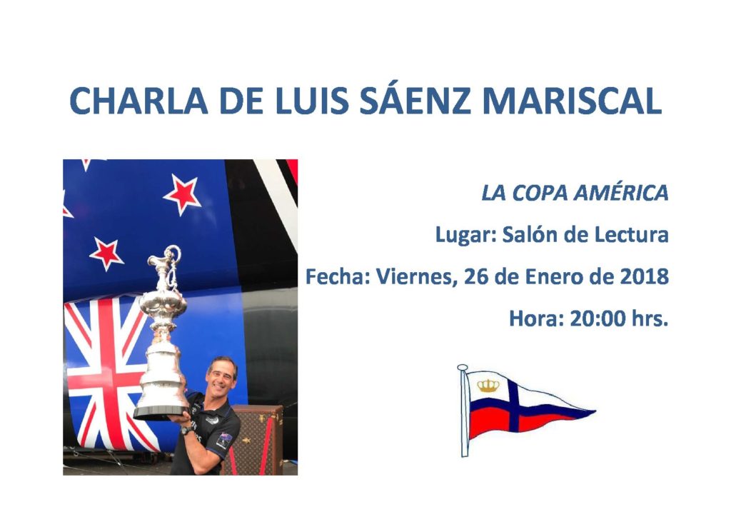 Los federados cántabros tenéis una cita con Luis Sáenz Mariscal en el salón de lectura del R.C.M.S. el próximo viernes 26 a las 20:00 horas, pues vendrá a Santander a dar una conferencia sobre su trabajo y sus experiencias en la 35 Copa América disputada el año pasado. ¡No os lo perdáis!