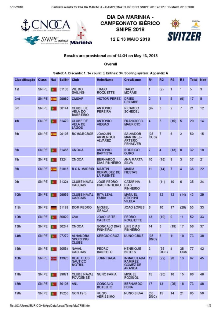 El pasado viernes 11 de Mayo la tripulación formada por Joaquín Armengot y Salvador Martínez-Artero viajaron hasta Portugal para competir en el Campeonato Ibérico de la Clase Snipe.
