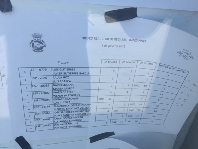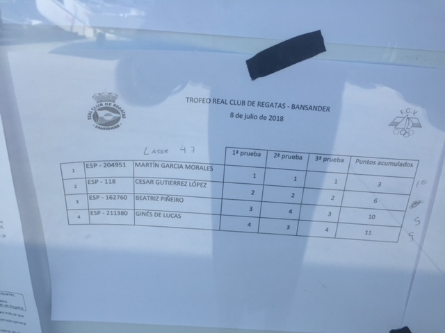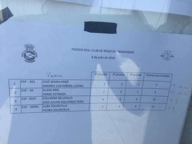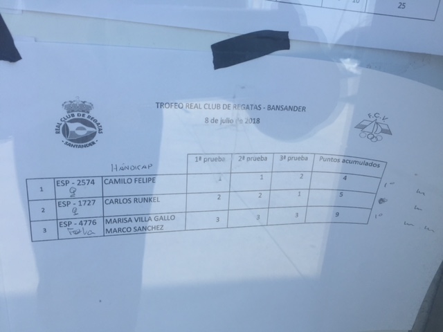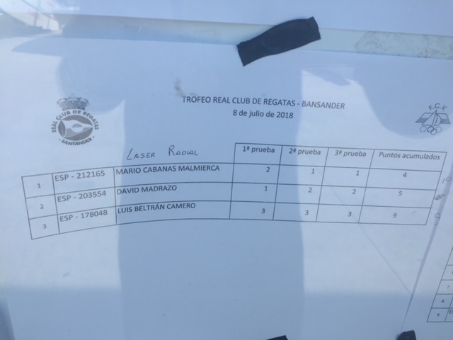 El primero en Optimist fue Camilo Felipe, seguido de Carlos Runkel. En Feva el podio fue para Marisa Villa Gallo y Marco Sánchez. En Laser Radial ganó Mario Cabanas, seguido de David Madrazo. En Laser 4.7 el ganador fue Martín García, seguido de César Gutiérrez. En 29er, el podio fue para los hermanos Laro y Martín López Lozada seguidos de Carlota García y Susana Hurtado. En Vaurien se impuso José Mª Mier y Andrea Castañera seguidos de Alain Arri y Jorge Estrada. La case más numerosa fue Snipe, ganando Luis Gutiérrez y Javier Gutiérrez seguidos de Paula Hoz y Luis Abarca
