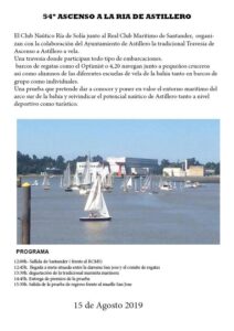 El próximo jueves 15 de Agosto se celebrará la tradicional Hándicap de Astillero, organizada por el Real Club Marítimo de Santander en colaboración con el Ayuntamiento de esta ciudad y el Club Náutico Ría de Solía, y que este año cumplirá su 54 aniversario
