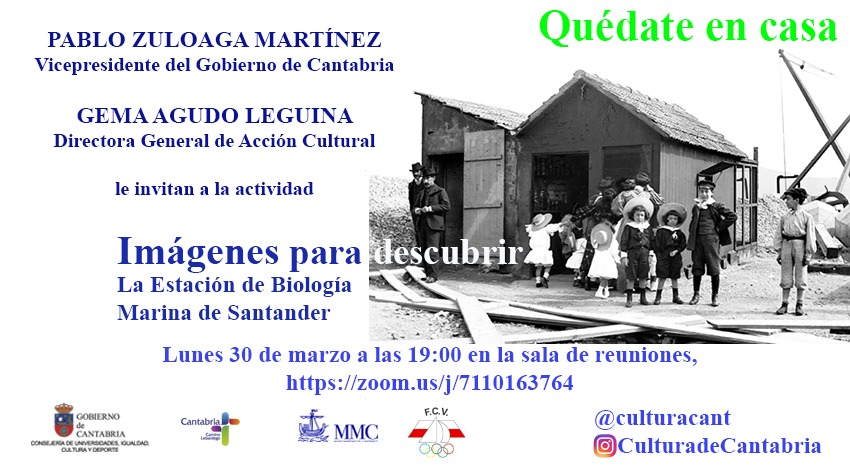 La Consejería de Universidades, Igualdad, Cultura y Deporte con la colaboración del Museo Marítimo del Cantábrico y la Federación Cántabra de Vela, organiza el lunes 30 de marzo a través de la plataforma Zoom.us una videoconferencia titulada: “Imágenes para descubrir: la estación de Biología Marina en Santander”.