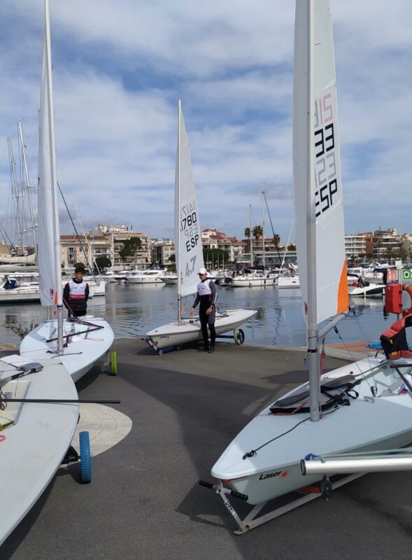 Ainhoa Bejer, Jorge Campos y Carlos Casanueva han viajado hasta Cambrils para participar en la Copa de España ILCA 4 que comienza en el día de hoy en aguas de Cambrils.