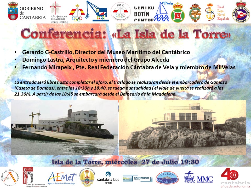 Dentro del ciclo de conferencias deportivo-culturales puesto en marcha por la RFCV junto a la Autoridad Portuaria de Santander por su 150 aniversario, la próxima tendrá lugar el próximo miércoles 27 de julio a las 19:30h en la Isla de la Torre y se titulará «Isla de la Torre» será impartida por :