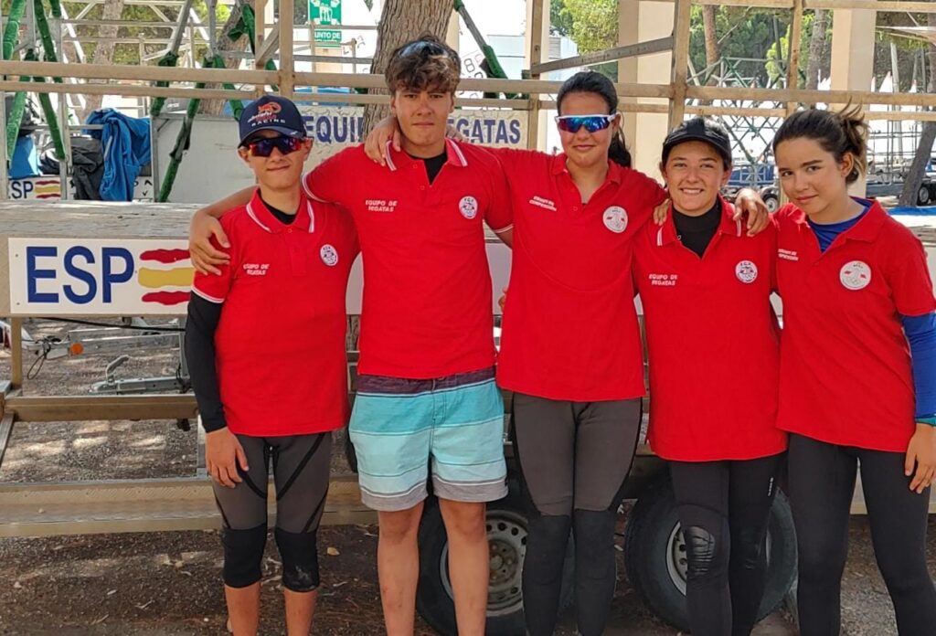 Regatistas de la Real Federación Cántabra de Vela en la Copa de España de ILCA4 celebrada en Murcia del 1 al 4 de julio de 2023: David Sales Luengo, Carlos Casanueva Bartolomé, María Echávarri Erasun, Carmen Salcines Barquín y Clara Chamizo Pi, todos ellos del Real Club Marítimo de Santander.