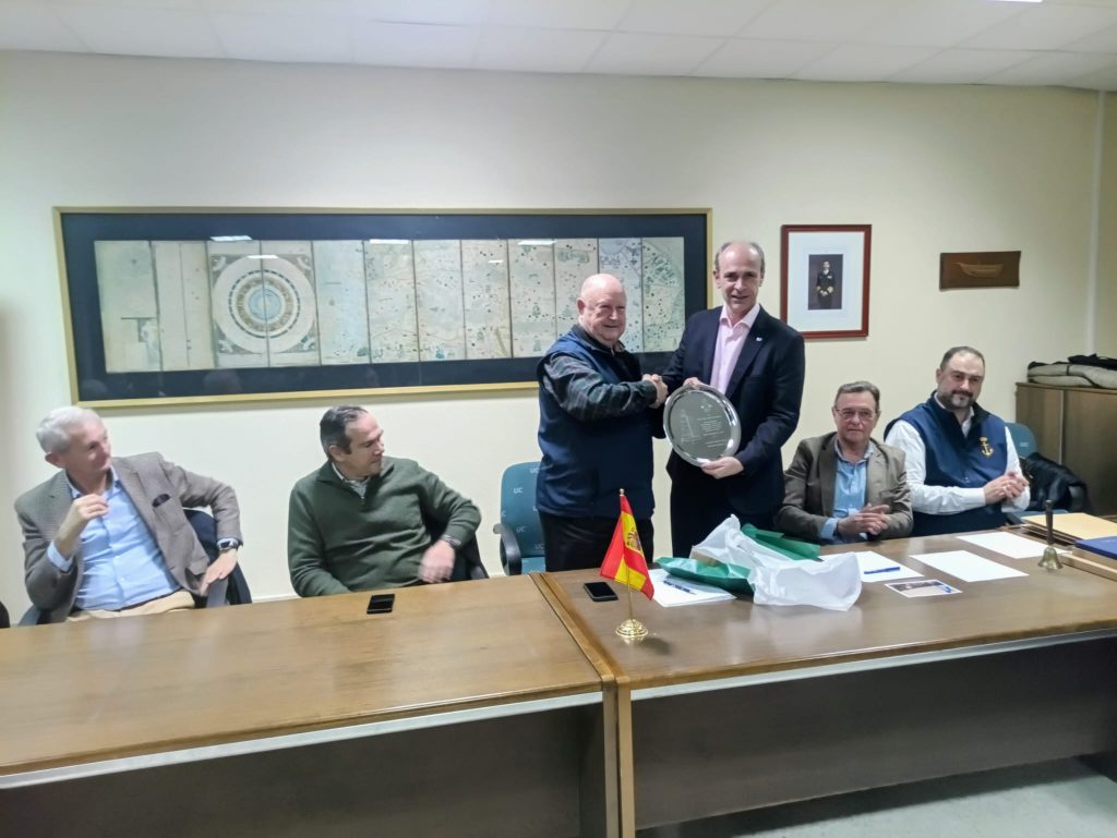 El presidente de la Real Federación Cántabra de Vela, Fernando Mirapeix Eguiluz, ha hecho entrega de una placa conmemorativa del 125 aniversario de la Real Liga Naval Española (RLNE), a su delegado en Cantabria y Castilla y León, Luis Roberto de la Fuente Sánchez. En el marco de la reunión mensual de la RLNE de Cantabria y de Castilla y León.